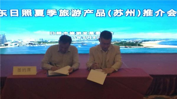 会上,苏州市旅游局与日照市旅发委签订了旅游宣传营销合作框架协议,日照市平安国际旅行社与苏州红枫国际旅行社飞逹国际旅行平台签订了游客互送协议,达成年输送游客3万人的意向。 同时,日照旅游(苏州)营销中心正式挂牌成立。