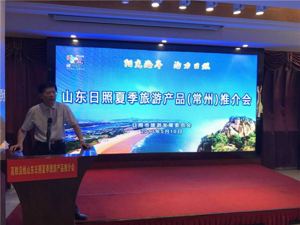 5月10日,山东日照夏季旅游产品推介会走进苏沪第三站常州,来自常州市各大旅行社和新闻媒体记者100余人参加了推介会。