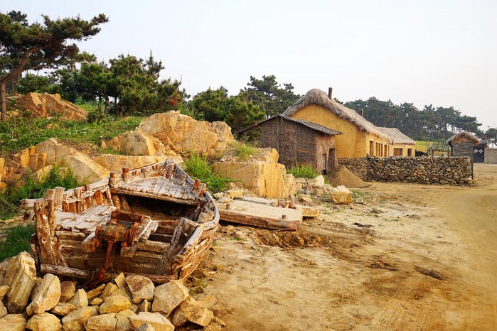 在任家台礁石公园旁边,有个宁静古朴的小渔村,和我们住宿的现代渔村不同,这里仿佛停留在几十年前,走在这里,时光都好像倒流了。这里是以前拍摄电视剧遗留下来的影视基地,这种状态使得这个渔村更加淳朴自然,即使是旺季,清晨和傍晚在这里都可以找到属于你的宁静空间。