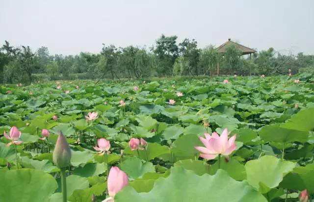 满池塘的荷花,荷花仙子在池边走过,周围绿树如荫、曲径通幽,每年六月开始,荷花陆续开放,清风徐徐,给游客送来了缕缕清香。