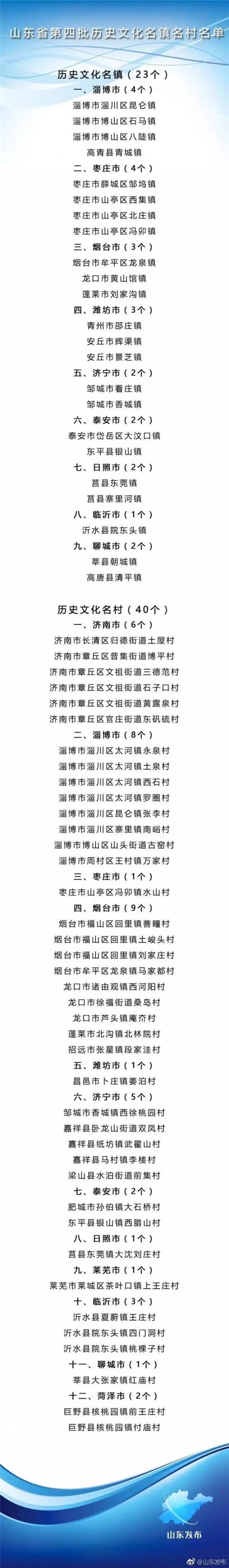 山东省住房和城乡建设厅、山东省文物局日前下发《关于公布山东省第四批历史文化名镇名村的通知,为更好地保护、继承和发扬优秀历史文化遗产,弘扬民族传统和地方特色,我省组织开展了第四批省级历史文化名镇名村评选工作。在各市评选推荐、省里组织审查的基础上,经省政府同意,确定日照市莒县东莞镇、莒县寨里河镇等23个镇、莒县东莞镇大沈刘庄村等40个村为山东省第四批历史文化名镇名村,现予以公布。