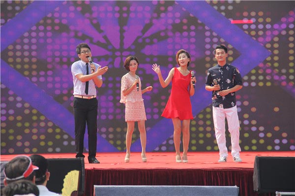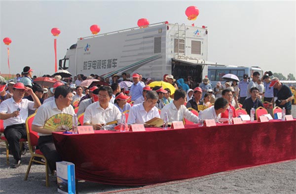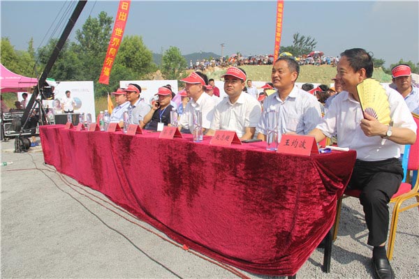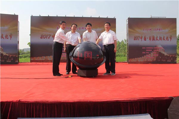 在天台山脚下,伴随着喧天锣鼓声,杨留星、王均波、赵东江、王华共同启动了太阳文化节开幕球,光球闪动,标志着太阳文化节正式开幕。
