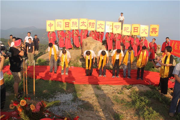 日照东邻黄海,日出先照,独特的自然地理和人文环境孕育了原始太阳崇拜,由此开创了中国古代璀璨的太阳文化,是与埃及、希腊、印度、秘鲁齐名的世界五大太阳文化起源地之一,素有“东方太阳城”的美誉。历史上日照地区每逢农历六月十九在天台山举办羲和老母庙会,祭祀太阳。同时,民间也普遍在这一天给太阳过生日。日照太阳文化节约定俗成,源远流长。
