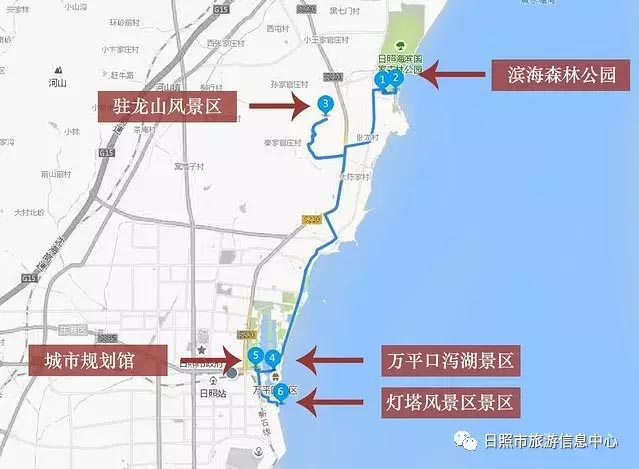 5.日照市公交:如果在日照坐公交车出行的话,可以选择政府专门给游客开通的旅游1号路线,这条路线南起灯塔风景区北到森林公园,可以说是从南道北贯穿整个沿海景点及各个浴场,玩起来很方便。