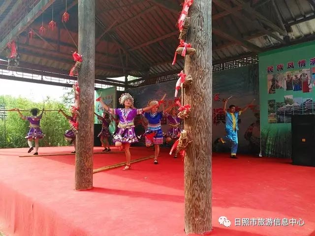 景区内有少数民族表演,我们赶来的时候正演着舞蹈、杂技,互动环节有竹竿舞,可以上台和表演者一起玩。 这种表演每天五场,上午三场、下午两场,表演的杰布略有不同,但是这个表演频率,几乎每批游都能看到表演。