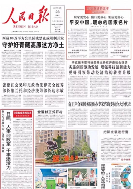 人事应改革,干事添活力!《人民日报》头版点赞日照!(2017年08月24日)
