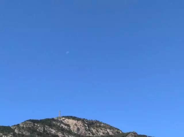 湛蓝的天空中挂着一弯浅浅的月亮
