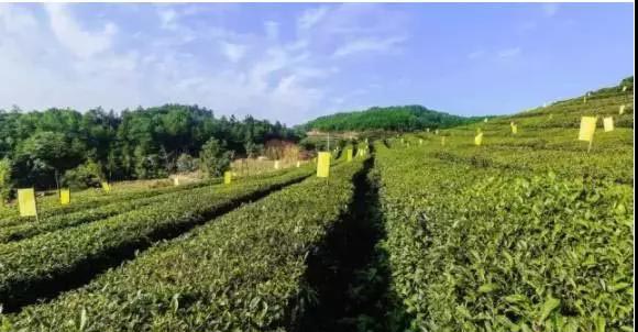 茶田种植区:合理选择不同高度树种合理搭配进行互补种植,并按一定间距进行茶树与经济林的套种,形成复合型茶田生态系统。