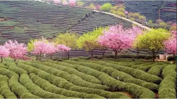 观光茶园的植物配置可以分成茶田种植区和游憩观赏区两部分进行植物造景设计。