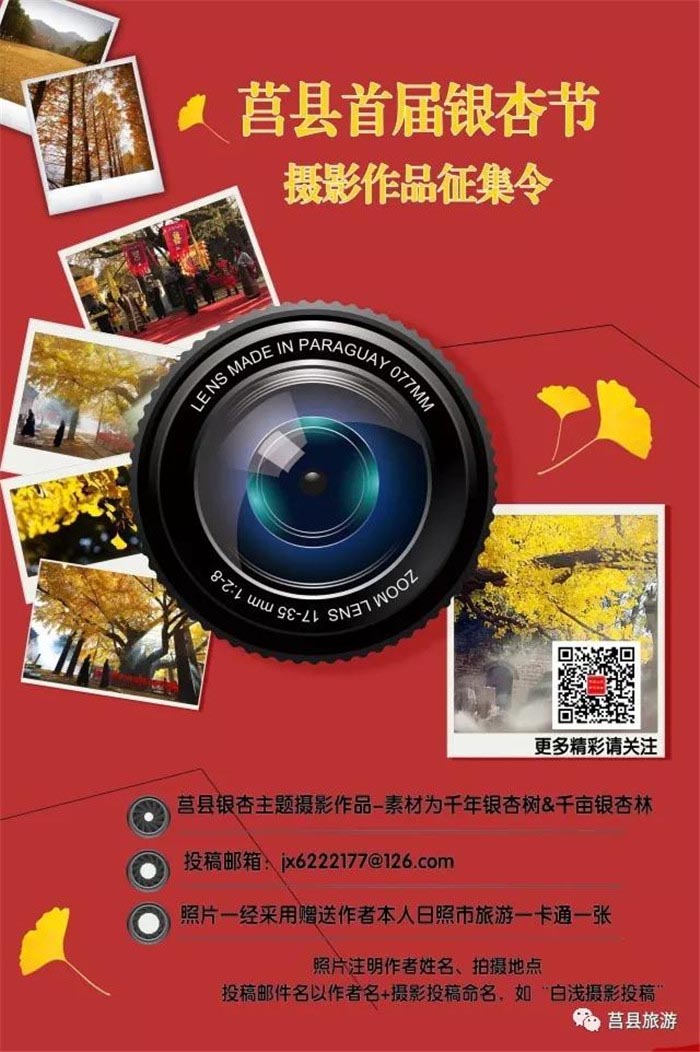 为了全方位展现莒县银杏风貌,11月4日-11月15日期间,征集莒县银杏主题摄影作品(请注明作者姓名、电话和拍摄地点),照片一经采用,赠送日照市旅游一卡通一张(已有卡者免费年审一次)。