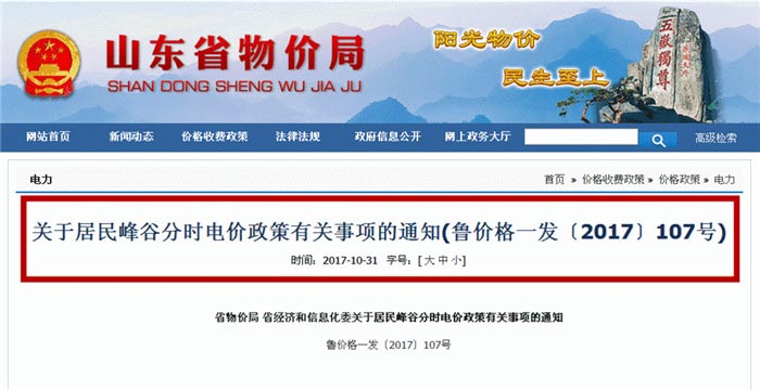 自2017年11月1日起,全山东省范围内施行居民生活用电峰谷分时电价政策。