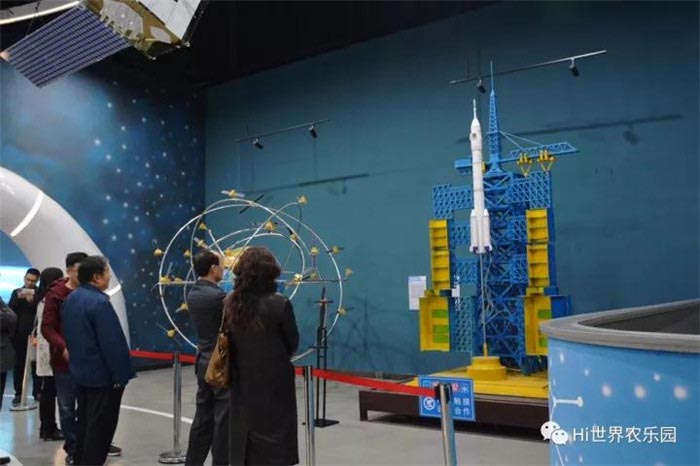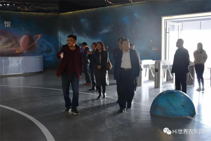 刘斌主席在德润集团副总经理秦静、Hi世界农乐园总经理周福运的陪同下依次参观了解太空农业科技馆、航天科技馆,并详细听取了太空农业科技馆航天工程育种技术介绍,同时实际感受了VR星际影院、VR月球车等虚拟模拟科技体验项目。