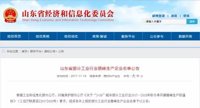 近日,山东省经信委发布了2017-2018年秋冬季《山东省部分工业行业错峰生产企业名单公告》。名单涉及涉9大行业,873家企业,16个城市!