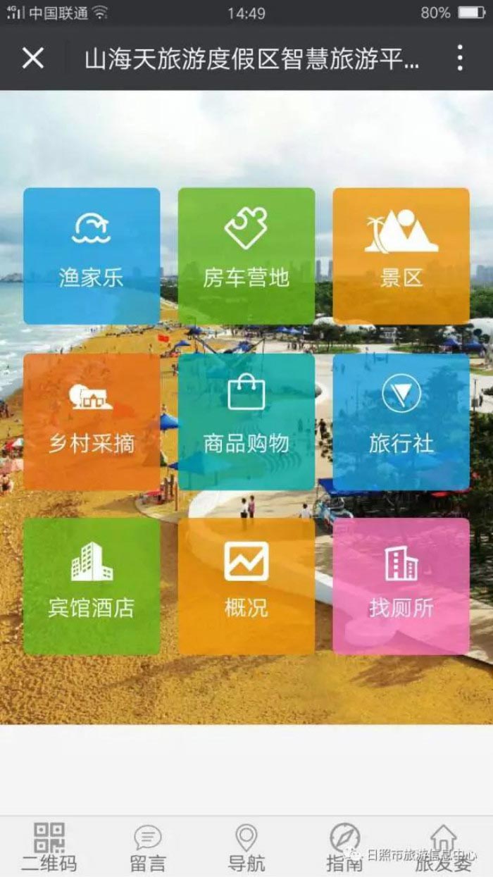 在“旅游富市”、“全域旅游”风口上,山海天旅游度假区旅游局顺势而为,积极落实市旅发委发展智慧旅游、给旅游插上信息化的翅膀、旅游行业全面触网的要求,开发建设了《山海天智慧旅游公共服务平台—码上山海天》,并通过市旅发委开发建设的《日照市智慧旅游公共服务平台—码上日照》与全市各区县智慧旅游平台上的旅游资源实现互联互通。