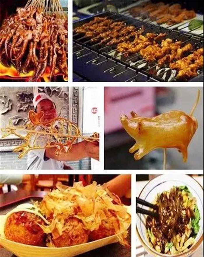 糖人、糖画、轰炸大鱿鱼、酸辣粉,