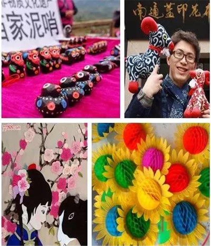 布贴画、泥哨、蓝印花布、翻花……
