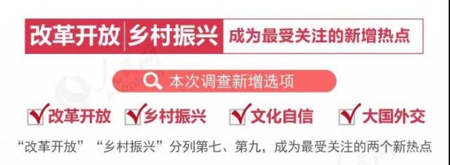 改革开放、乡村振兴是首次作为热点出现在两会调查,分列第七第九,成为最受关注的两个新热点。