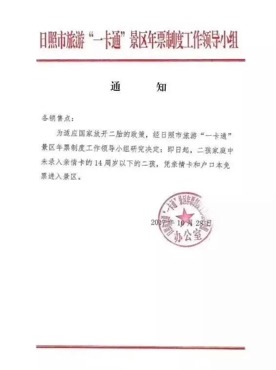 同时,日照二孩凭亲情卡和户口本免费进入景区啦!
