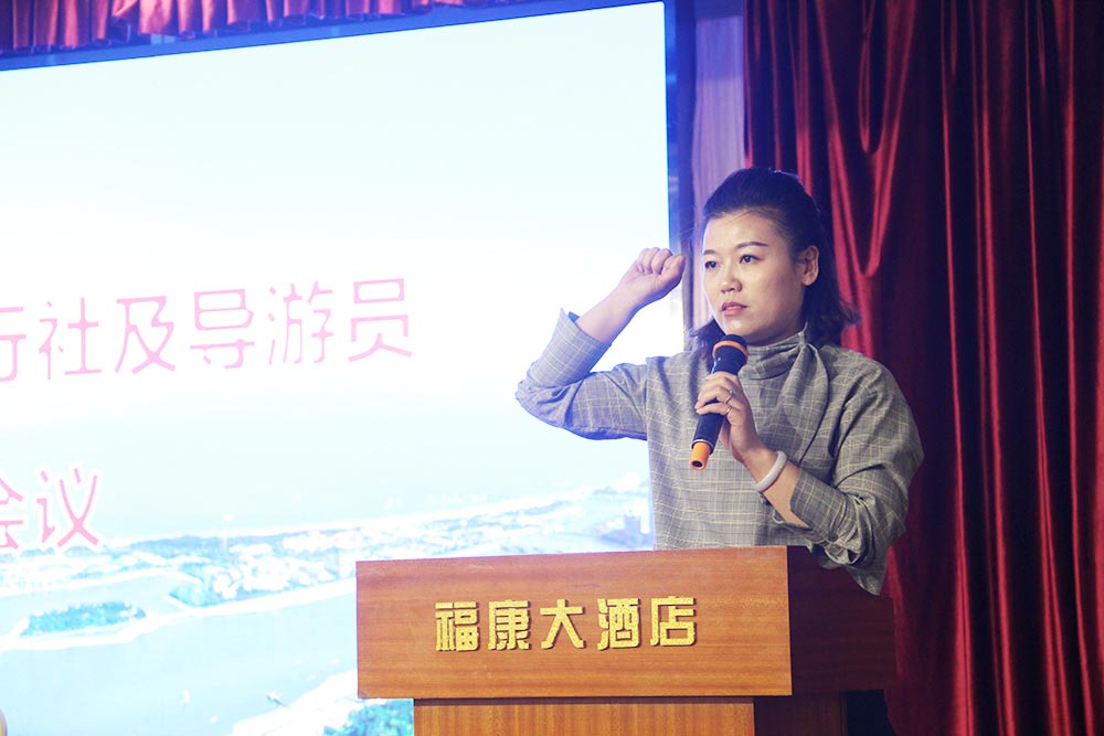 会议传达了省旅发委有关精神,导游进行了宣誓,旅行社分会、导游协会代表发言,海滨旅行社、龙之旅旅行社行业代表及导游代表进行了表态发言。
