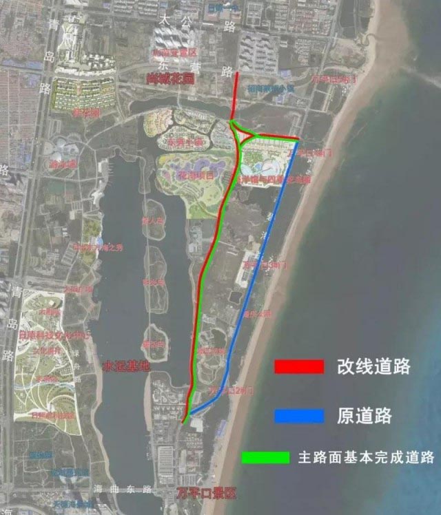 4月24晚8:35分,随着最后一车沥青料摊铺完成,碧海路改线工程西移路段及左转支路、右转支路主车道沥青面层顺利摊铺完成,完成道路标线施划后,计划在5月1日前开放通行。