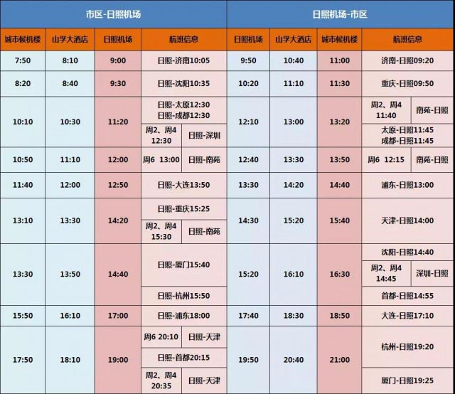 6月4日起执行!日照机场2018夏航季航班时刻表(2018年06月04日)